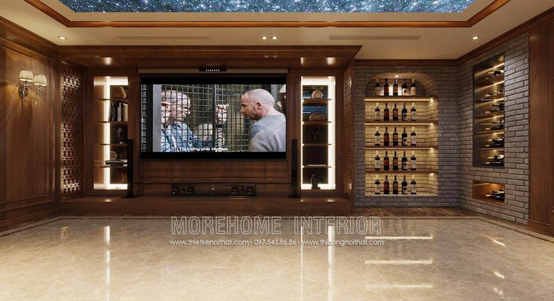 Mẫu kệ tivi gỗ tự nhiên tại tầng hầm biệt thự vinhomes greenbay
