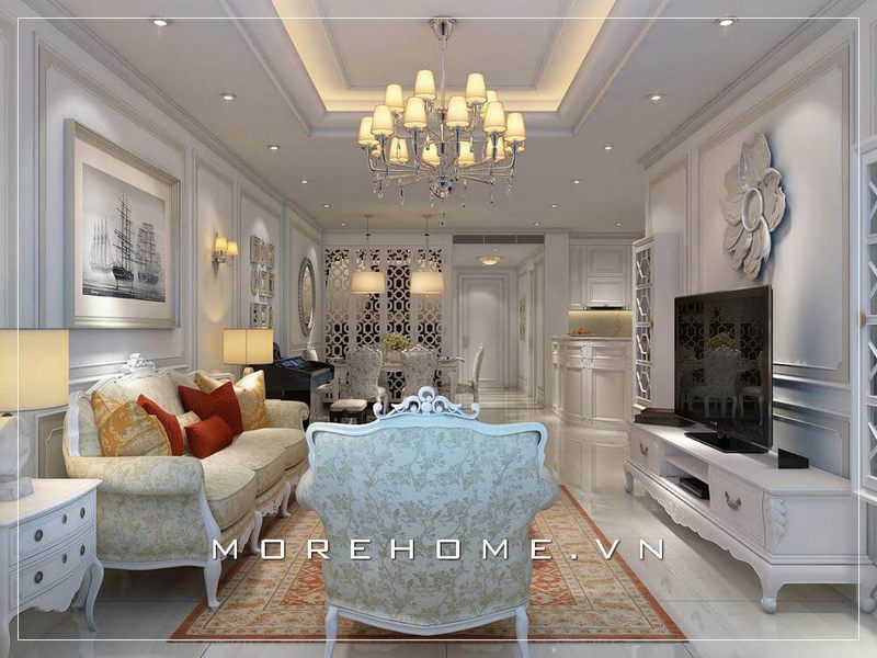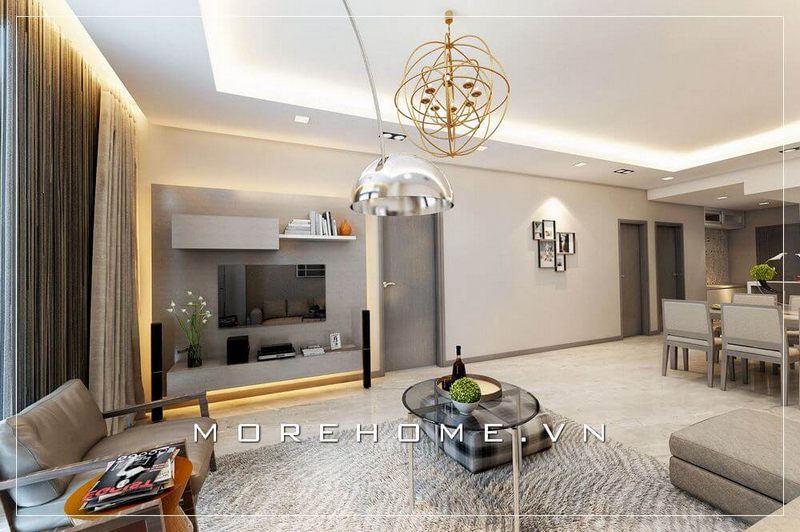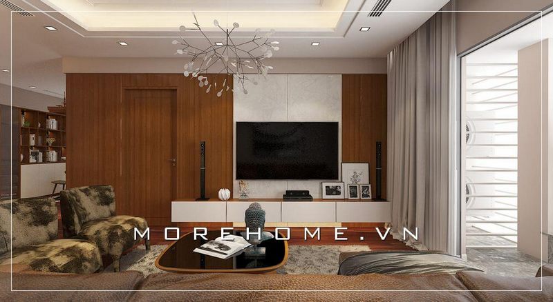Kệ TV nhìn khá đơn giản nhưng rất hài hòa với những nội thất khác trong căn phòng. Sự kết hợp nội thất trong căn phòng khách ăn ý và logic đã tạo nên một không gian phòng khách tiện nghi và sang trọng.