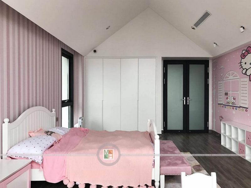 Thiết kế tủ quần áo cho phòng ngủ 2 bé gái phong cách tân cổ điển tại biệt thự cao cấp