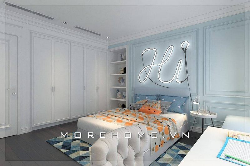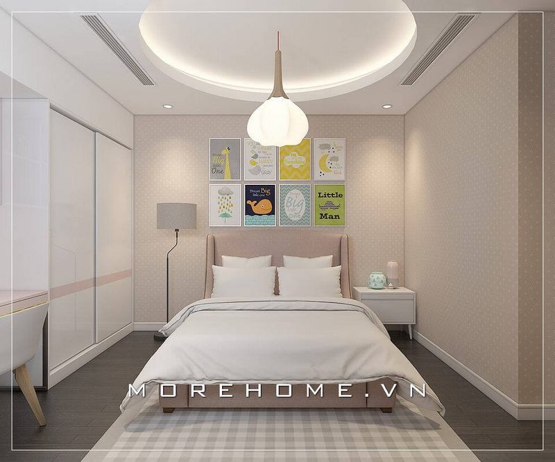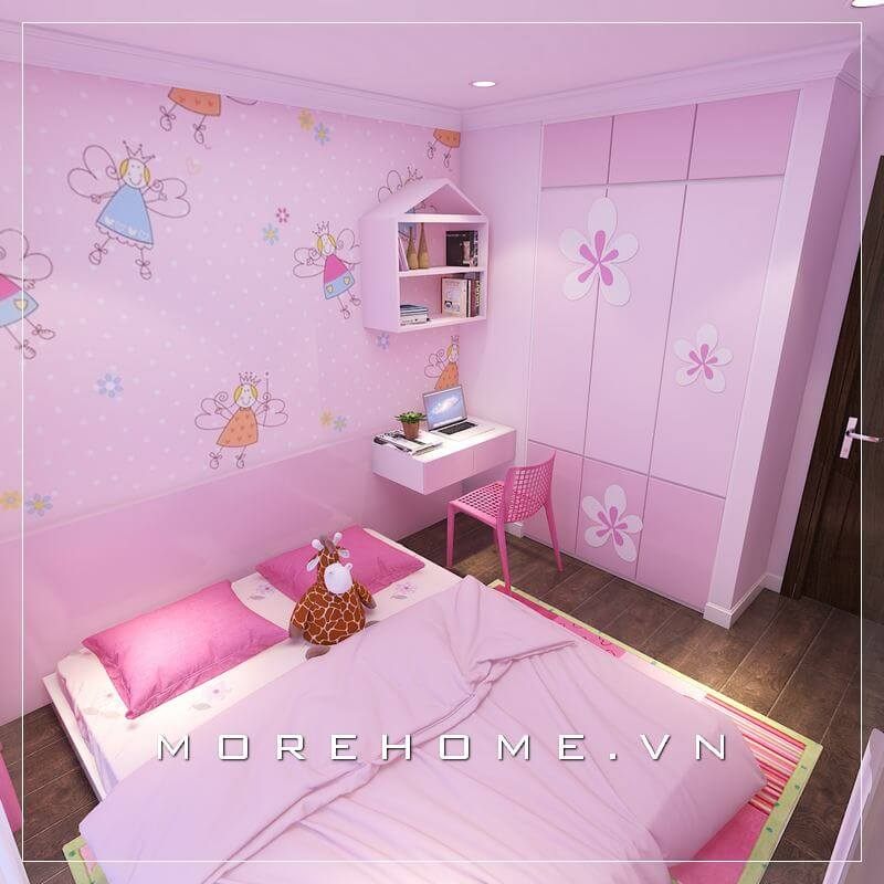 Thi công tủ áo phòng ngủ cho bé gái chung cư Eco Dream, tủ áo gỗ công nghiệp cánh lùa sơn cao cấp