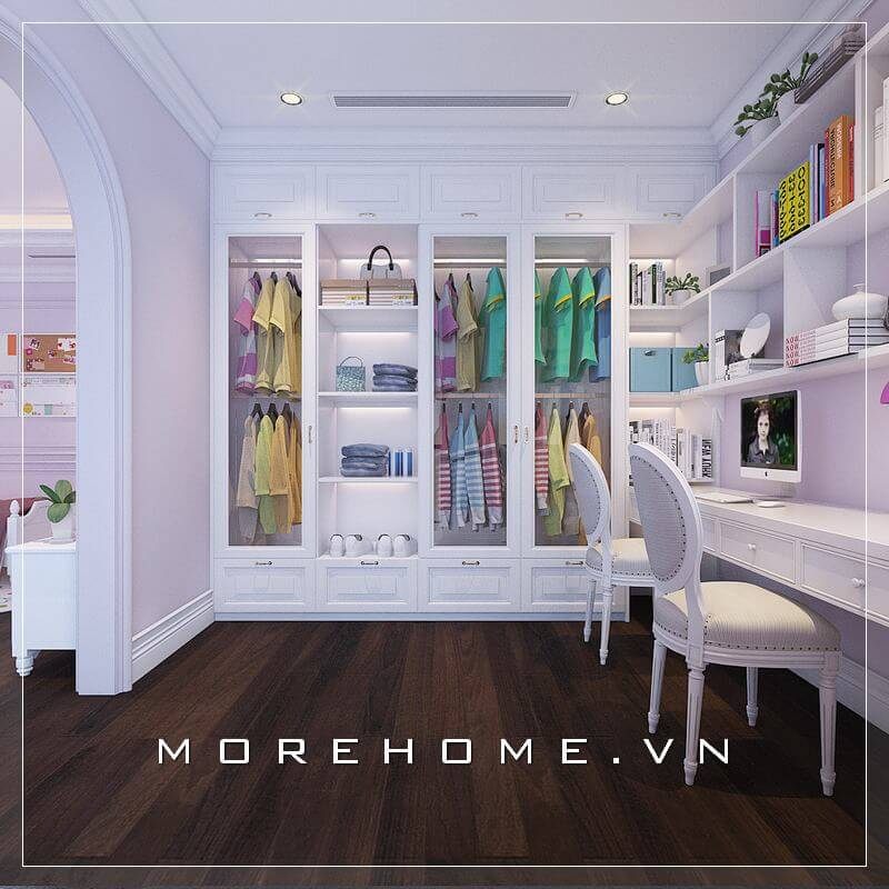 Thiết kế tủ quần áo phong cách tân cổ điển sang trọng cho phòng ngủ bé gái tại biệt thự cao cấp