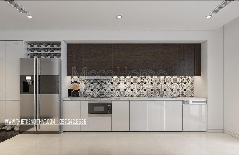 Tủ bếp gỗ công nghiệp được xem là một điểm nhấn độc đáo và mang lại sự sang trọng cho không gian phòng bếp.